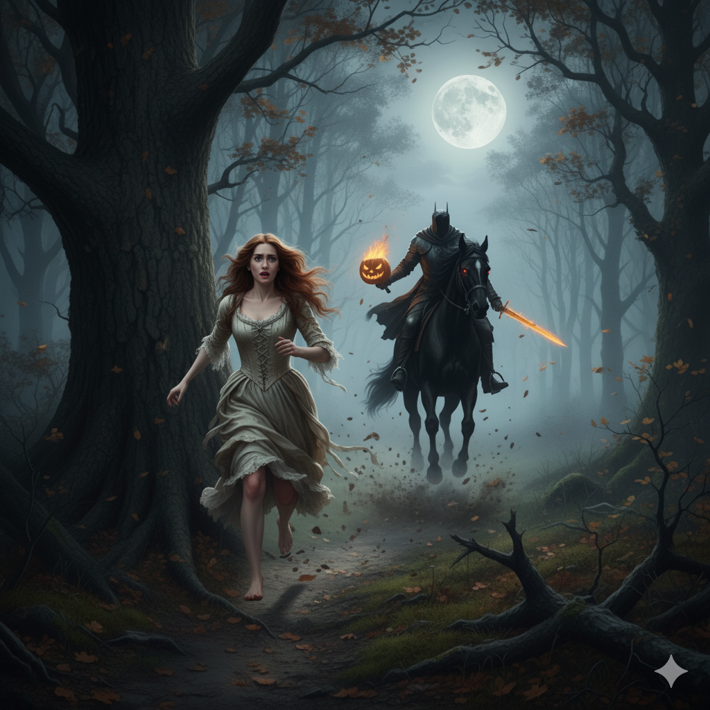 Here’s our original image an AI generated image of The Headless Horeseman, imagined in a cinematic theme, using Gemini.