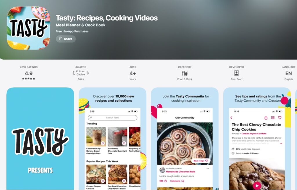 Apple App Link: https://apps.apple.com/us/app/tasty-recipes-cooking-videos/id1217456898